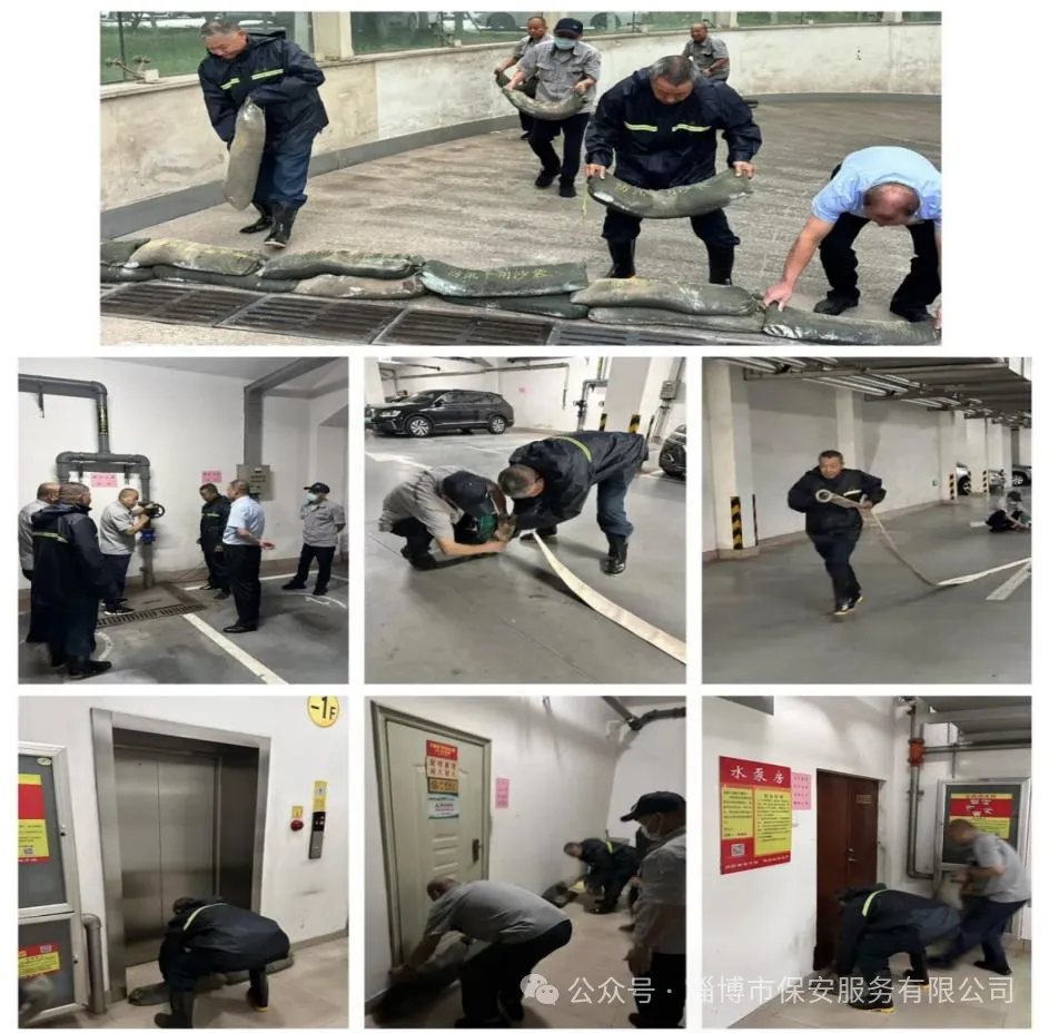 演練模擬了持續(xù)強降雨導(dǎo)致地下車庫積水、電梯停運、重點設(shè)施設(shè)備間進水等突發(fā)狀況。演練中,各部門迅速響應(yīng),工程人員第一時間啟動排水泵、關(guān)閉電源;安保人員搬運沙袋封堵車庫出入口、電梯間、重點設(shè)施設(shè)備間等部位。