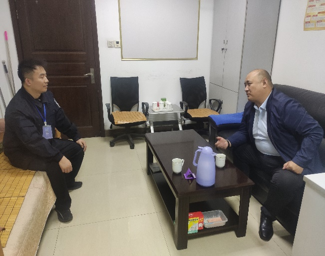 公司黨委委員、副總經(jīng)理丁德鵬到建行大隊與新安置的退役軍人邵珠海進(jìn)行了談心談話,詳細(xì)了解安置退役軍人的基本信息、家庭情況、專業(yè)技能、特長、愛好等情況,詢問到公司來后在工作與生活方面的情況。在談話中,安置退役軍人暢所欲言,丁德鵬同志對于提出的疑問進(jìn)行詳細(xì)的解答,氛圍歡快溫馨。